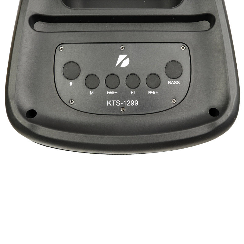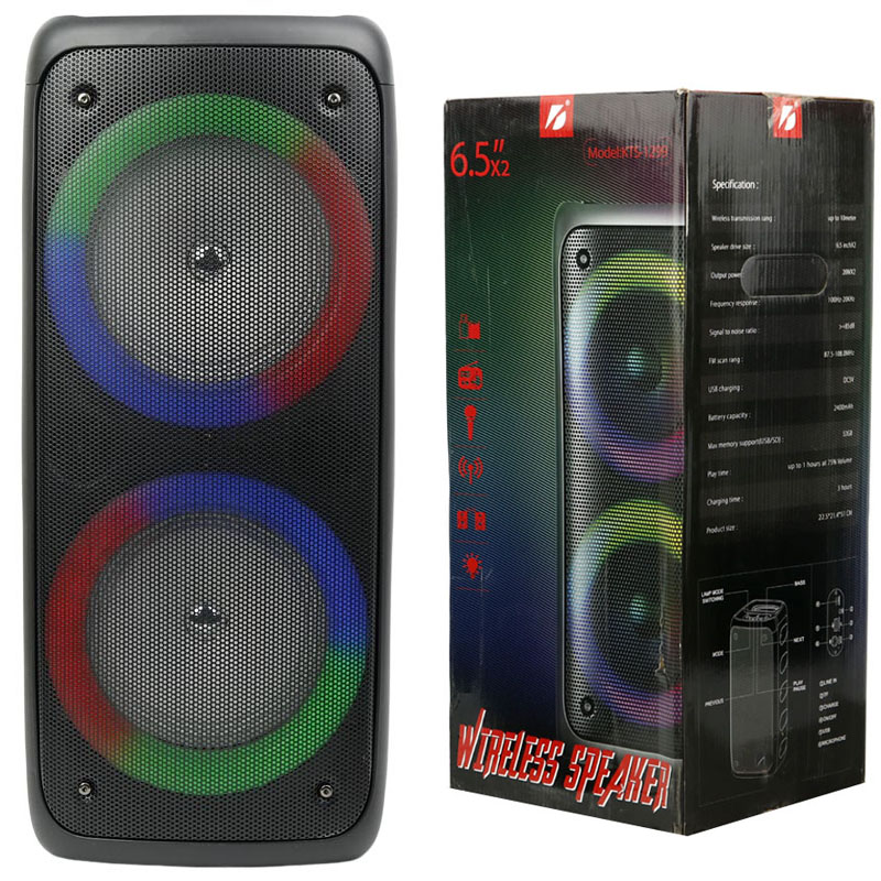 اسپیکر بلوتوث قابل حمل KTS با توان خروجی 40 وات و ظاهر شیک و زیبا میتواند انتخاب خوبی برای گوش دادن و لذت بردن از موزیک دلخواهتان باشد. این اسپیکر دارای دو باند 6.5 اینچی و دارای رقص نور RGB می باشد که هنگام پخش موزیک زیبایی چندانی به اسپیکر میدهد. پشتیبانی از کارت حافظه و فلش مموری ، بلوتوث ، ورودی AUX و قابلیت اتصال میکروفن از ویژگی های این اسپیکر قدرتمند می باشد .