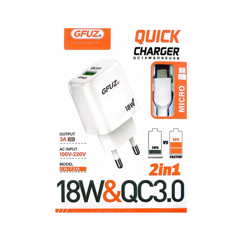 شارژر دیواری فست جیفیوز GFUZ CH-72M 18W + کابل میکرو