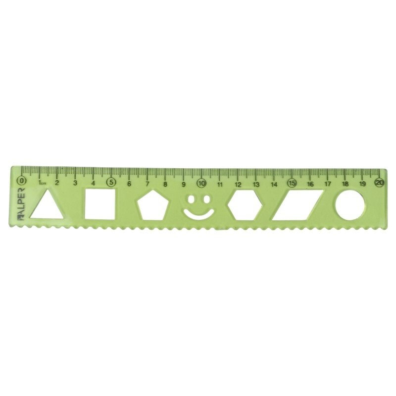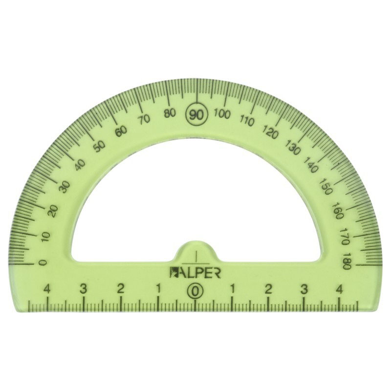 دارای 1 عدد نقاله 180 درجه به همراه 1 عدد خط کش به طول 20 سانتی مترهمراه شابلون دایره، مربع و مثلث