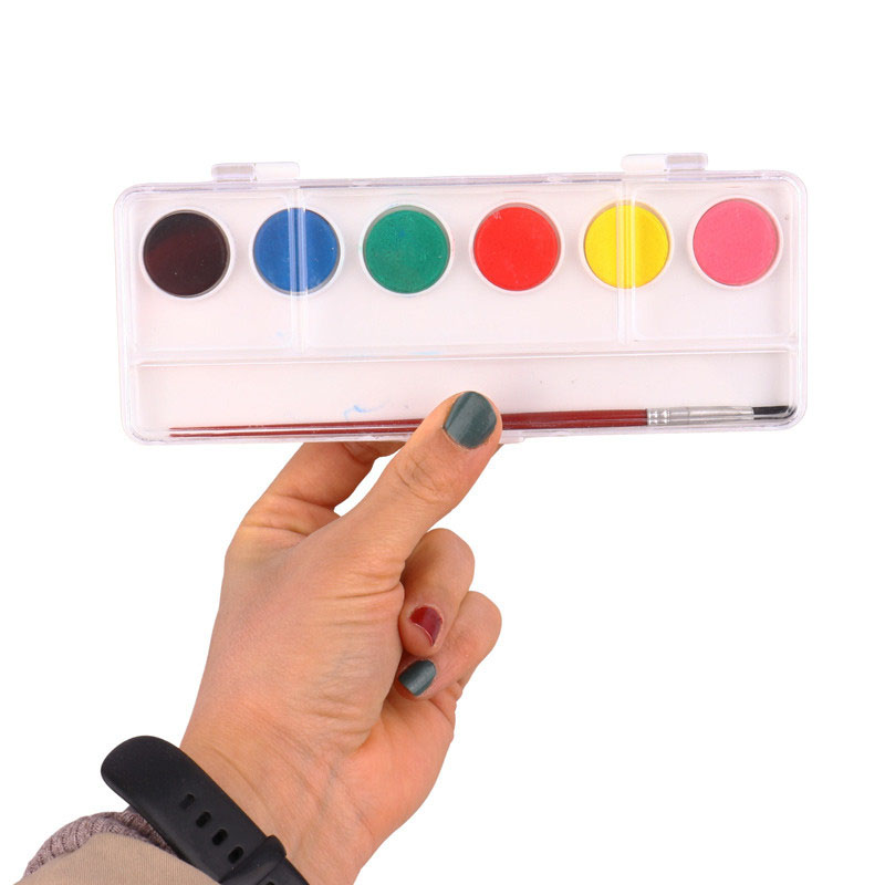 ارائه شده در ۶ رنگ شاد با امکان ترکیب رنگ آسان و قابل شستشو با آبجنس بدنه پلاستیکی با درب شفاف، همراه قلموی پلاستیکی و دارای پک مقوایی