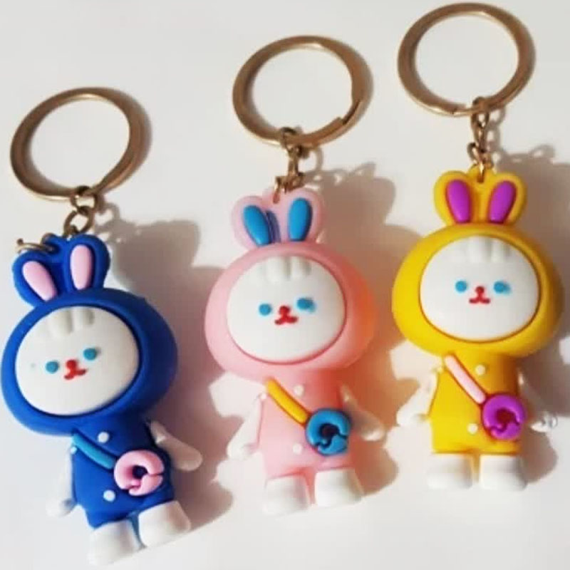 آویز و جاکلیدی خرگوش صورتی سیلیکونی
