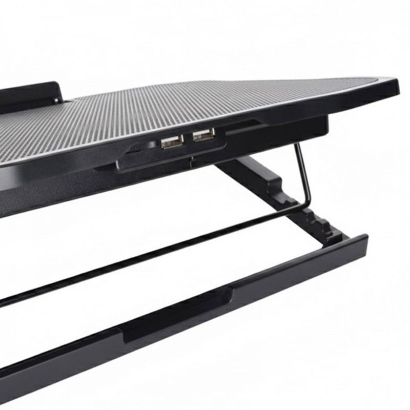 این کول‌پد دارای چهار حالت مختلف استند برای تنظیم زاویه است. این قابلیت، استفاده از لپ‌تاپ را در شرایط مختلف آسان‌تر کرده و ارگونومی را برای تایپ یا بازی بهتر می‌کند. کاربر می‌تواند زاویه ارتفاع را بسته به نیاز تغییر دهد و تجربه‌ای راحت‌تر از کار با لپ‌تاپ داشته باشد.