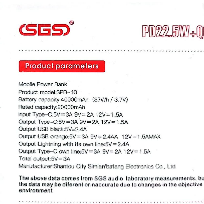 پاوربانک SGS SPB-40 ظرفیت 40000