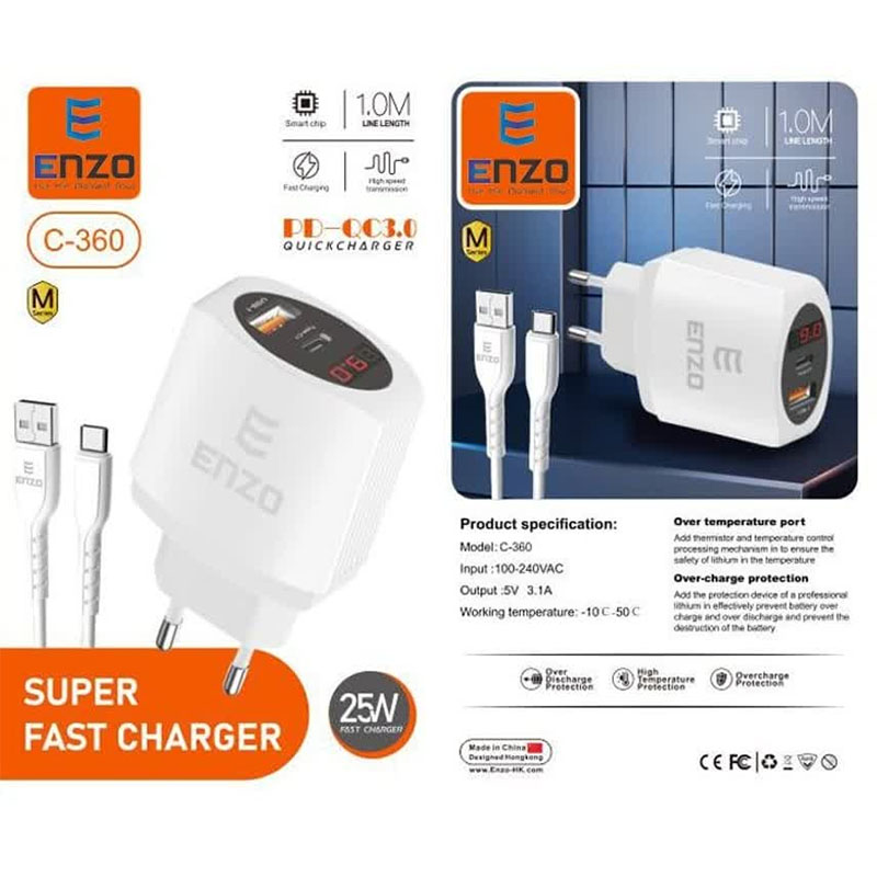 شارژر فست انزو ENZO C-360 25W + کابل TYPEC