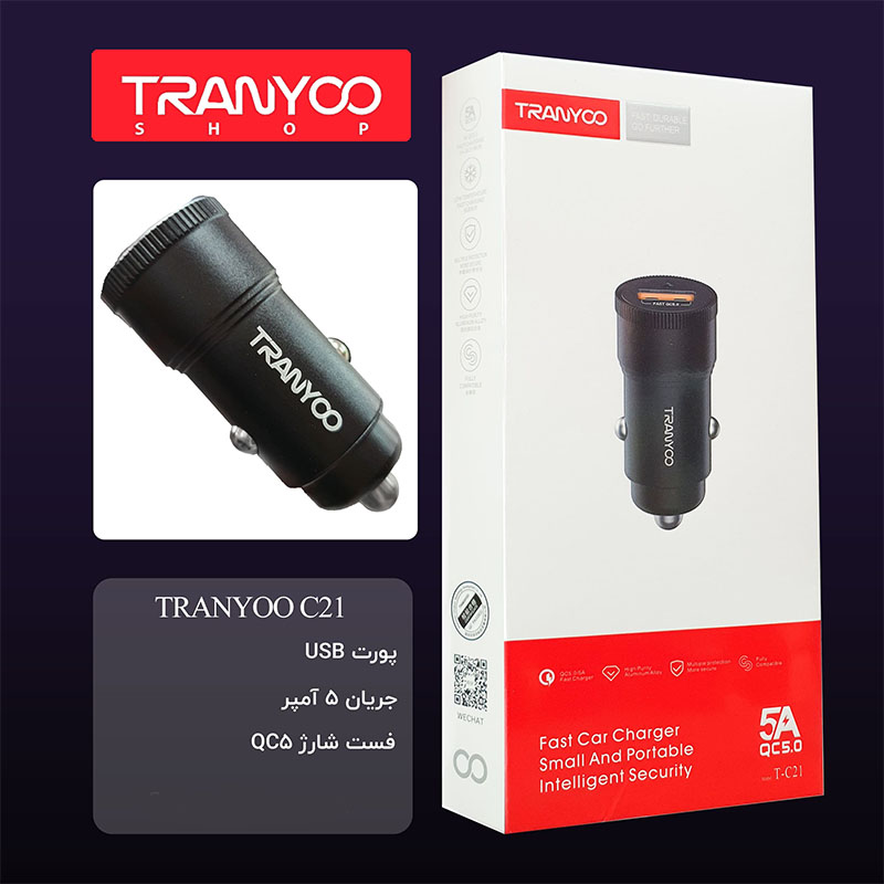 شارژر فندکی فست ترانیو TRANYOO T-C21 5A