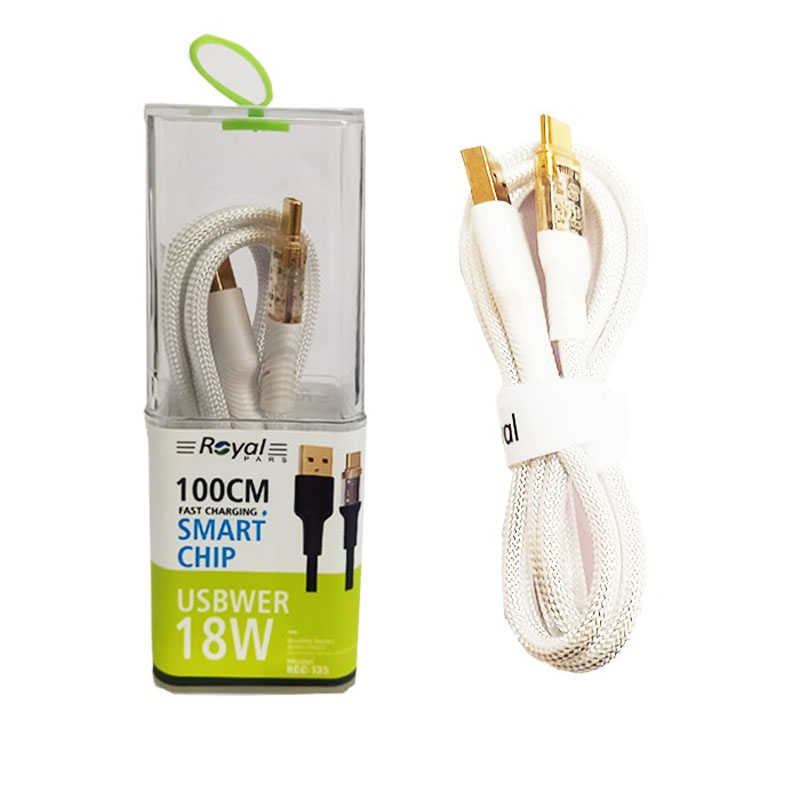 کابل شارژ ROYAL RCC-135 Type-C 1M 18W- LED LIGHT - سفید
