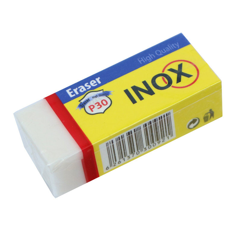 پاککن از جمله ابزاری است که از سوی دانش آموزان مقطع ابتدایی و افراد با حرفه هایی نظیر طراحی بسیار مورد استفاده قرار می گیرد. یک پاک کن نامرغوب می تواند هنگام استفاده باعث کثیف کاری در برگه شود. پاککن جامد اینوکس ساخت کشور ایران است. این پاک کن از مواد مرغوب تهیه شده و باعث می شود هنگام پاک کردن کاغذ شما کثیف نشود. ابعاد :� ۱۰*۱۰*۴۰ میلی متر وزن : ۱۰ گرم جنس : جامد