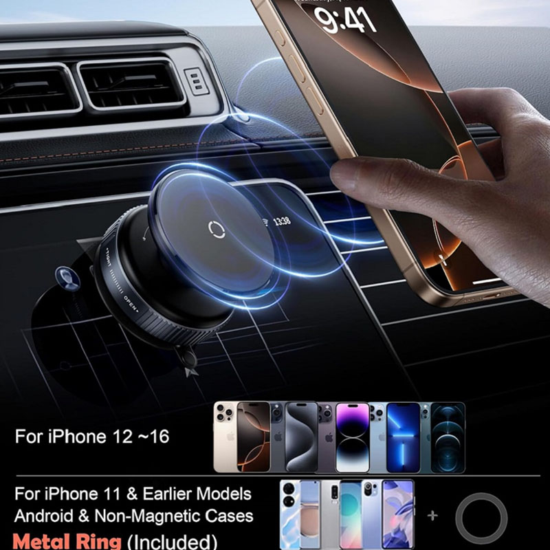 【مگنت روبیدیوم قوی دو سیم پیچ N۵۲】 این نگهدارنده تلفن همراه برای خودرو دارای یک حلقه مغناطیسی دو لایه قدرتمند با الگوی دایره ای دقیق ۱:۱ برای اتصال پایدار و ایمن است. حتی در هنگام ترمزگیری ناگهانی، نیروی مغناطیسی ۱۸N تقویت شده تلفن شما را محکم در جای خود نگه می دارد.