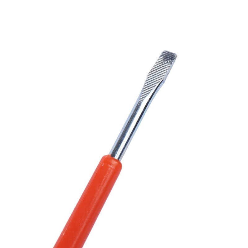 میله ساخته شده از فلز و دسته از جنس پلاستیک، عایق در برابر جریانات برق، طول کلی حدود 14 سانتی متر