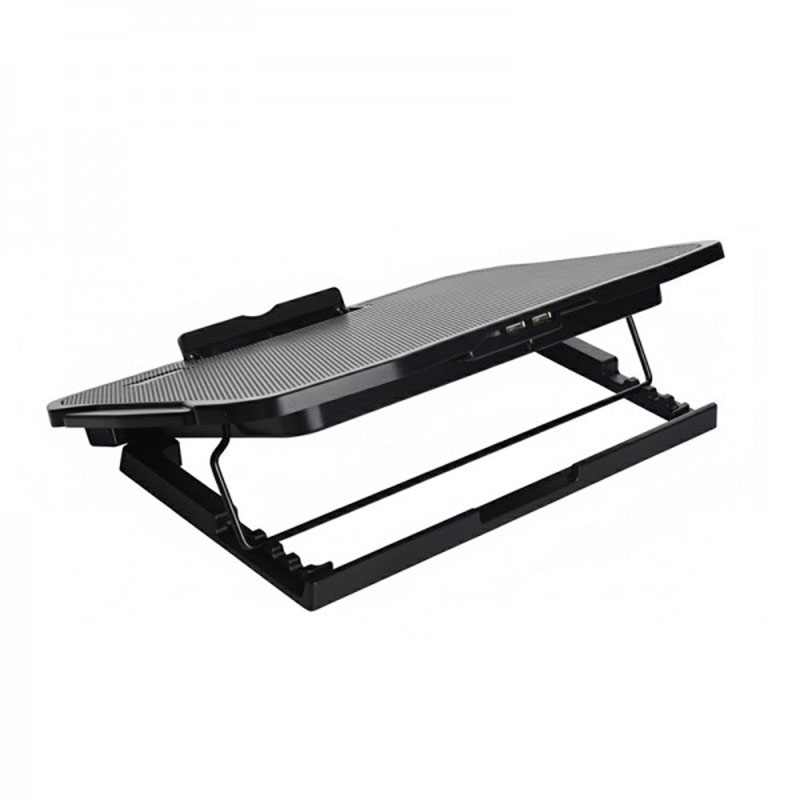 این کول‌پد دارای چهار حالت مختلف استند برای تنظیم زاویه است. این قابلیت، استفاده از لپ‌تاپ را در شرایط مختلف آسان‌تر کرده و ارگونومی را برای تایپ یا بازی بهتر می‌کند. کاربر می‌تواند زاویه ارتفاع را بسته به نیاز تغییر دهد و تجربه‌ای راحت‌تر از کار با لپ‌تاپ داشته باشد.
